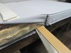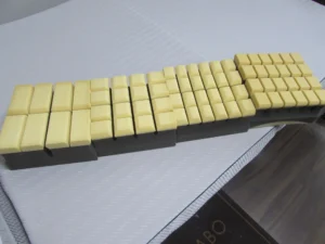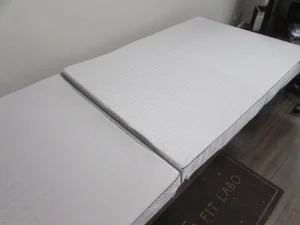 オーダーメイドマットレスは立位計測、体圧計測をして出てきたデータに基づき10cm間隔で硬さの異なるキューブウレタンを配列。